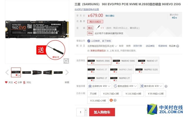 都说960PRO固态太贵,好在它还有一个孪生兄弟960EVO,不仅性能强悍(官方标称的顺序读取为3200MB/s、顺序写入为1500MB/s,十分接近960PRO),最重要的是价格更为亲民,250GB版本679元,性价比很高。