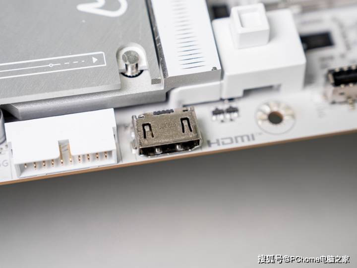 可能大家注意到后置I/O区域没有显示输出,其实除了两个雷电接口可以输出DP信号之外,Z890电竞冰雕还特别设计了副屏HDMI接口(),这其实是主要针对DIY玩家的设计,在做一些机箱DIY,比如大侧透机箱中安装副显示屏的时候就很方便了。