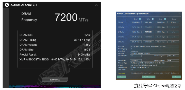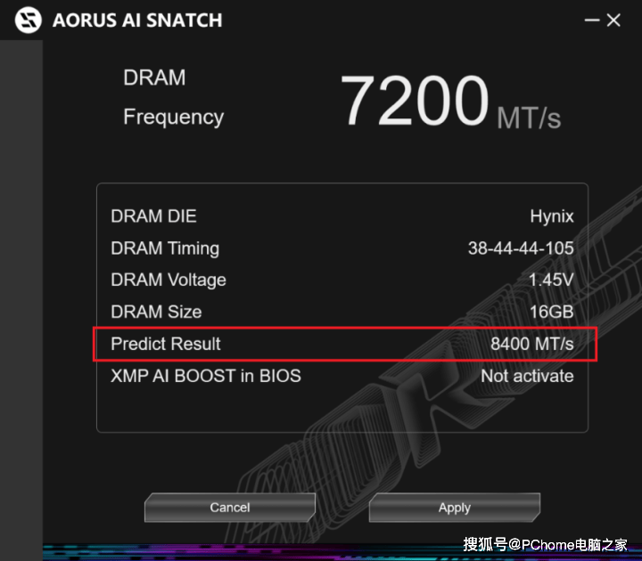 例如,AI SNATCH分析此次测试使用的内存后,给出了8400 MT/s的预估频率建议。这个时候只需点击应用重启系统即可。此时内存已经运行在8400MT/s,相应的时序、电压等参数已经自动调节好了。