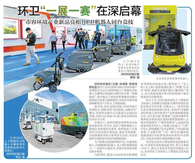 昨日,2025深圳(国际)市容环境产业博览会与2025深圳国际人工智能环卫机器人大赛暨应用创新大赛同步启幕。“展赛联动”,集中展示了深圳在智慧城市治理方面的前沿成果与创新路径,为培育市容环境领域新质生产力注入了强劲动能。