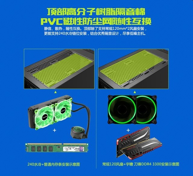 机箱的顶部和底部贴心的为玩家设计了防尘网,在保证机箱散热的同时,还能保证整机不受灰尘的打扰。