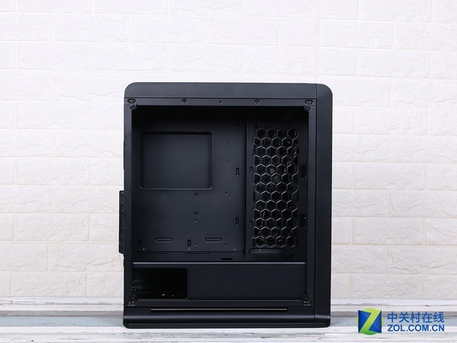 机箱的右侧采用了非侧透的设计,同时机箱背面开孔,大大提升机箱的散热能力,让玩家再也不比担心散热问题。