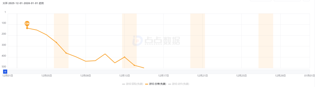 且《火环》公测当天只上了安卓版本,iOS端和PC端未能同步上线日,游戏的iOS版本才“迟到入场”。其成绩也只有公测前几天够看,在App Store游戏免费榜上,《火环》于