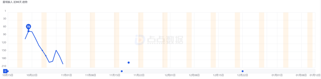 据点点数据显示,游戏上线后,在App Store游戏畅销榜上最高冲到了第37位,而后呈小幅下降趋势,近90天多在100-200名之间徘徊。App Store游戏免费榜方面,最高排名为第10位,而后稳定在了150-250名这一区间。
