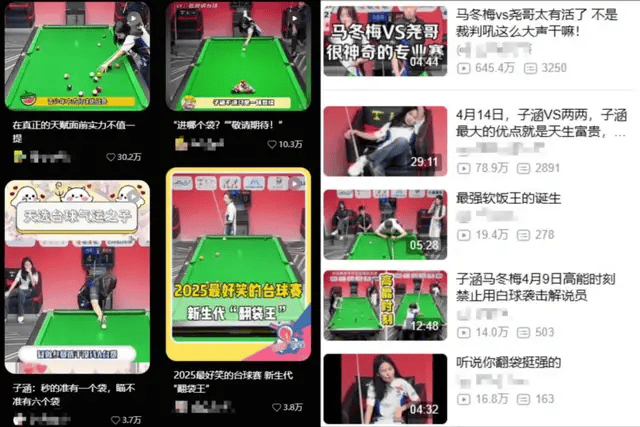 知名体育明星带来的示范效应,让台球持续活跃于公众视野。抖音、快手等短视频平台的推送,又成了潜在需求被点燃的关键催化剂,#台球 话题下的总播放量在抖音上已近千亿次。