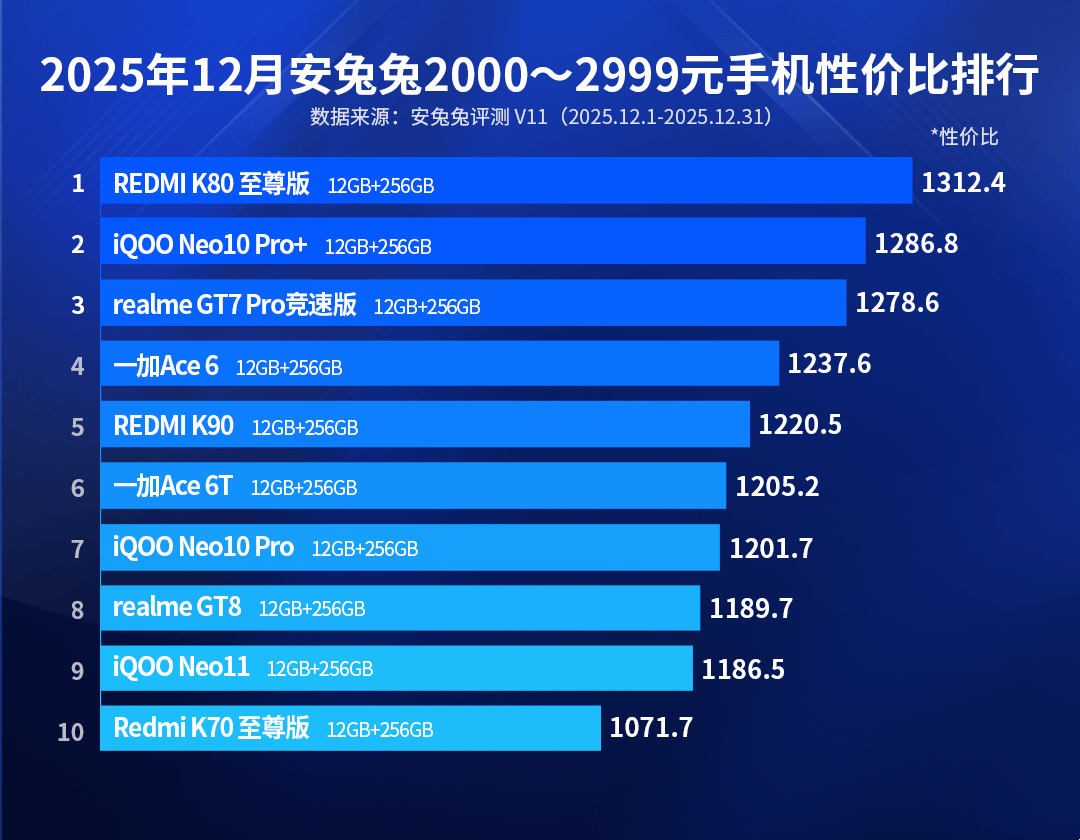 今天继续分享12月份安兔兔手机性价比榜单,这次的价格区间是2000-2999元,称它们为中端机没毛病吧。因为价格变动和国补等因素,这个性价比榜单仅供参考,毕竟这是上个月的价格和跑分数据。在分享榜单机型的同时,亓纪会附上该机的实时到手价格和选购建议,这才是这篇文章的重点内容。