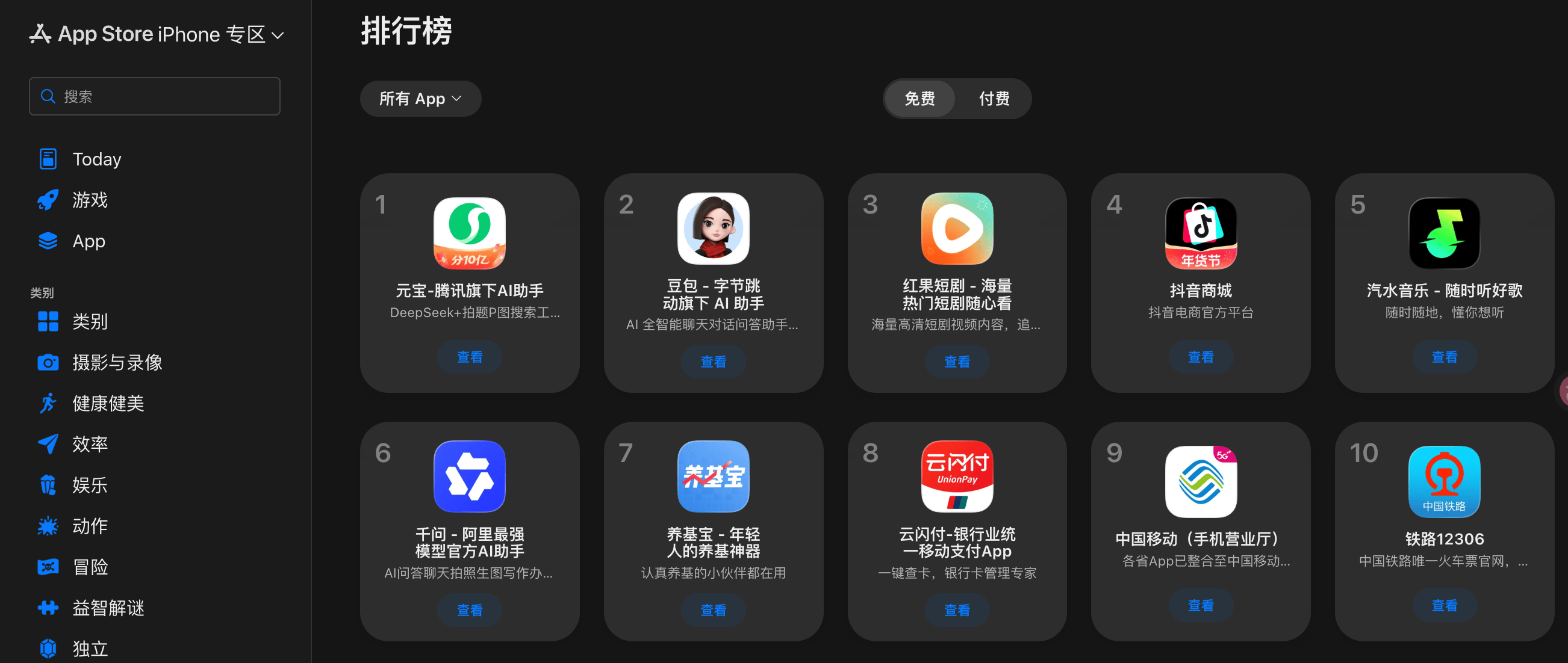 值得一提的是,元宝在各大应用商店排名飙升,登顶苹果中国区 App 免费榜第一,并且曾登上华为应用商城飙升榜第一、vivo 应用商城下载榜第二。