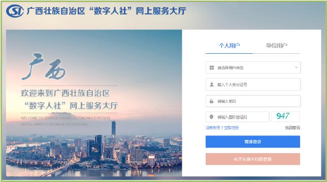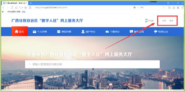或者直接打开浏览器,输入广西“数字人社”网上服务大厅地址(推荐使用谷歌浏览器):进行注册、登陆