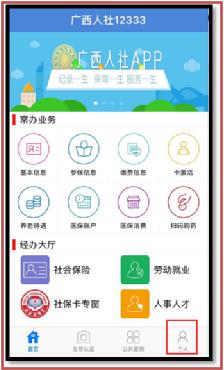 2、打开“广西人社”App后,点击界面右下方的“个人”按钮跳转至登录界面